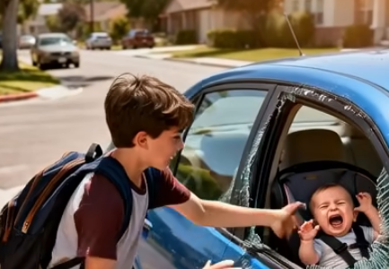 I was walking to school when I saw a baby trapped in a car under the 100°F sun. Her face was purple. I knew I’d be late and lose my “Golden Star” award, but I smashed the window with a rock and pulled her out. When I finally ran to class, my teacher screamed at me. “12 minutes late, Ethan! Go to the office immediately!” I sat in detention, crying, until the principal’s voice crackled over the intercom: “Ms. Alvarez, you and Ethan need to come to the front desk. Now.”