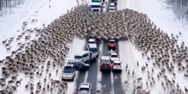 Drivers Face Surprise as Massive Herd of Deer Halts Traffic on Christmas