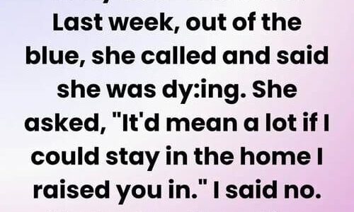 At 29, I own the house my father raised me in after my mother left me at 11 for another man. Last week, she called, terminally ill, wanting to “fix things” and move back in, claiming it’s the home she…