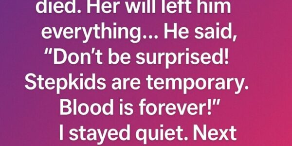 I cared for my stepmom for weeks after her surgery. Her real son was always “too busy working.” When she died, her will left him everything. He smirked and said, “Don’t be surprised. Stepkids are temporary. Blood is forever.” I…