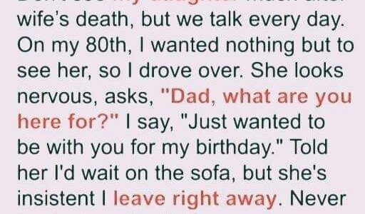 After my wife’s death, I rarely saw my daughter, though we talked daily. On my 80th birthday, I craved only her company, so I drove over. She looked nervous: “Dad, what are you here for?” “Just wanted to be with…