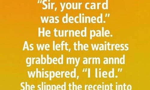 On a date, the bill arrived. The waitress said, “Sir, your card was declined.” My date’s face drained of color; awkward silence swallowed us. We gathered our things quietly, unsure how the night would end. Outside, the waitress caught my…