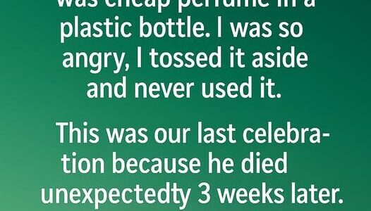 For our 10th anniversary, I gifted my husband his dream watch. He gave me cheap perfume in a plastic bottle. Furious, I tossed it aside unused. Tragically, he died unexpectedly three weeks later—our last celebration. Grief consumed me. I replayed…