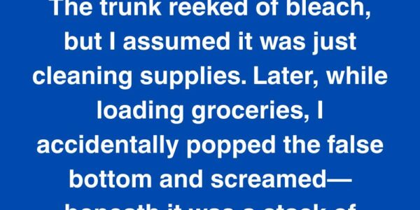 I borrowed my sister’s car while mine was in the shop. The trunk reeked of bleach, but I assumed it was just cleaning supplies. Later, while loading groceries, I accidentally popped the false bottom and screamed—beneath it was a stack…