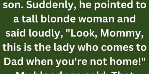 I was at the supermarket with my wife and our 4 y.o. son. Suddenly, he pointed to a tall blonde woman and said loudly, “Look, Mommy, this is the lady who comes to Dad when you’re not home!” My blood…