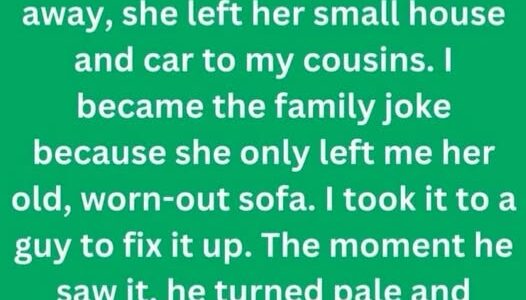 My grandmother lived a modest life. When she passed away, she left her small house and car to my cousins. I became the family joke because she only left me her old, worn-out sofa. I took it to a guy…