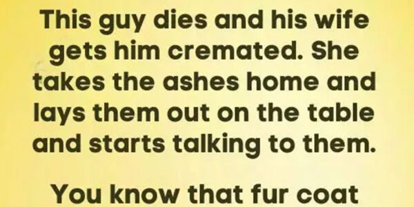 This guy dies and his wife gets him cremated. She takes the ashes home and lays them out on the table and starts talking to them. You know that fur coat you promised me ? I bought it with the…