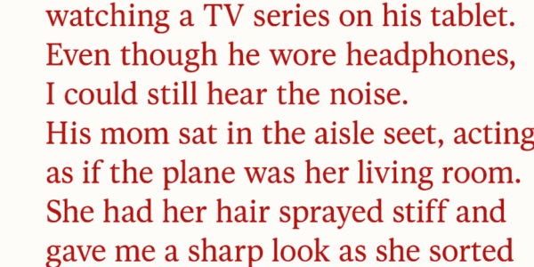 I buckled my seatbelt, ready for the long flight from New York to London. I love reading, so I brought a stack of books, hoping for a quiet trip across the Atlantic.Next to me, a teenage boy was watching a…