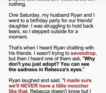 It was just another Saturday, a gentle reminder of what seemed beyond my reach. A casual day turned pivotal when I accidentally overheard a conversation my husband had with his friends, something that would change everything in our lives Motherhood…