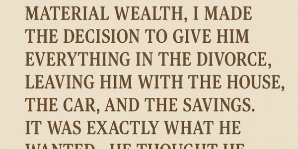 After years in a strained marriage dominated by Mike’s obsession with material wealth, I made the decision to give him everything in the divorce, leaving him with the house, the car, and the savings. It was exactly what he wanted—he…