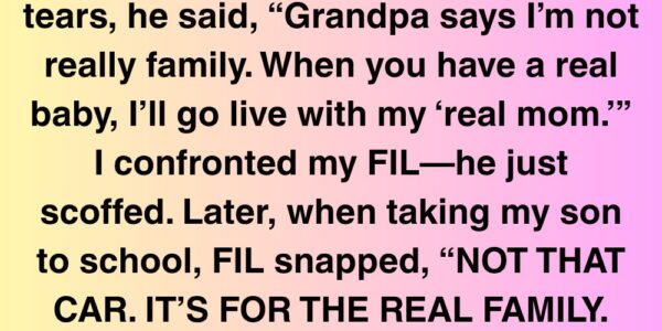 My 10-year-old son from my first marriage loves my wife. He calls her dad ‘Grandpa,’ always kind. One night, I found him crying. Through tears, he said, ‘Grandpa says I’m not really family. When you have a real baby, I’ll…