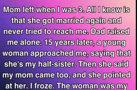 Mom left when I was 3. All I know is that she got married again and never tried to reach me. Dad raised me alone. Fifteen years later, a young woman approached me, saying that she’s my half-sister. Then she…