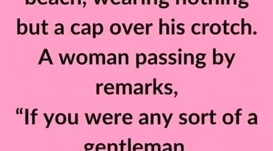 A man is lying on the beach, wearing nothing but a cap over his crotch. A woman passing by remarks, “If you were any sort of a gentleman, you would lift your hat to a lady.” He replies, “If you…