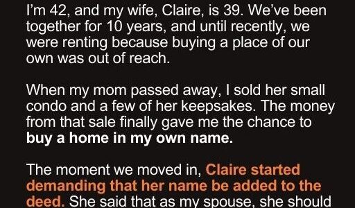 At 42, I used my late mother’s inheritance to buy a house, fulfilling a dream my wife Claire, 39, and I couldn’t afford while renting. But when Claire demanded her name on the deed, claiming her marital contributions entitled her,…