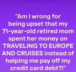 In a world of rising costs, a 71-year-old retired mother’s choice to spend her savings on European travel and cruises instead of helping her adult child with credit card debt has sparked debate. The child feels betrayed, believing family should…