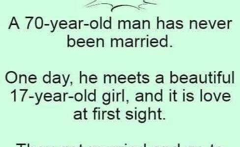 A 70-year-old man has never been married. One day, he meets a beautiful 17-year-old girl, and it is love at first sight. They get married and go to Florida for their honeymoon When they get back, tel frie, howvas him,…