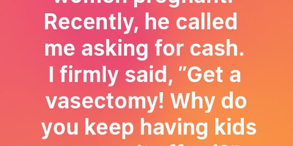 My brother called, asking for money after getting three women pregnant. I snapped, “Get a vasectomy! Why have kids you can’t afford?” He stunned me, saying, “I had one years ago.” His voice softened, “Those kids aren’t mine. Their fathers…