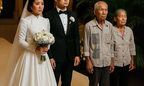 An elderly beggar couple appeared at their successful son’s wedding; they stood there trembling throughout the entire party, uninvited… and then the unexpected occured.
