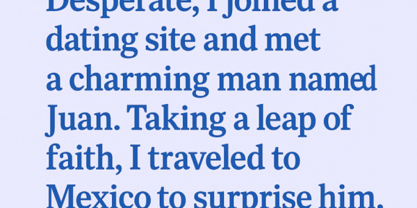 After my husband of twenty years left me, I struggled to find love again at forty-one. Desperate, I joined a dating site and met a charming man named Juan. Taking a leap of faith, I traveled to Mexico to surprise…
