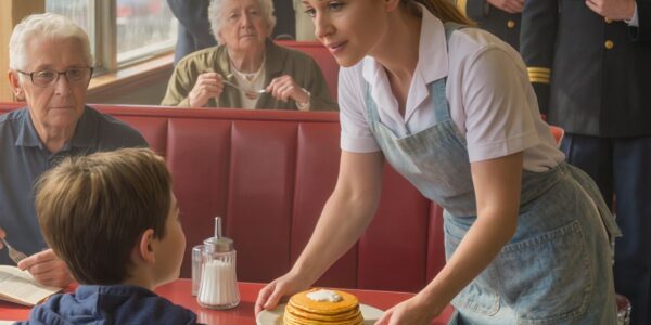 A Waitress Secretly Fed a Lonely Boy Every Morning — Until Four Black SUVs Pulled Up Outside the Diner and Soldiers Walked In With a Letter That Made the Entire Town Fall Silent