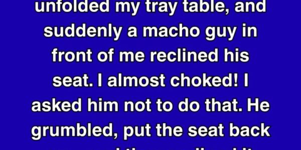 On a red-eye flight from Seattle to Chicago, I was exhausted after helping my sister clear our mom’s apartment. A muscular guy in front of me reclined his seat, crushing my tray table space. I asked him to adjust; he…