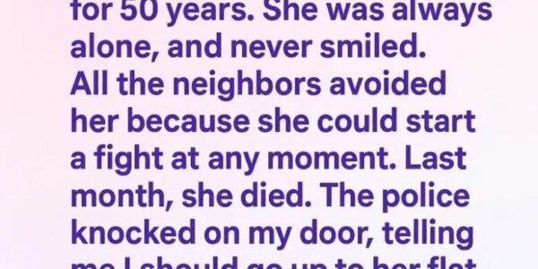She was always alone, never smiled, and people avoided her, dubbing her the “angry neighbor” who could spark a fight anytime. No one wanted to deal with her. Last month, she passed away. The police knocked on my door, asking…