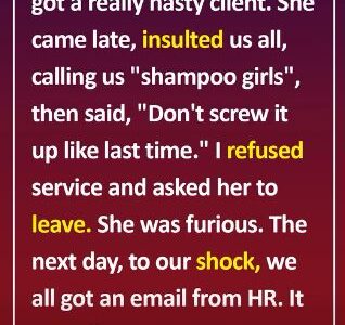 I’m Shiloh, 30. I work in a popular beauty salon. A couple days ago, a rude client walked in 25 minutes late. She looked annoyed, threw her jacket on the couch, then loudly called the junior staff “shampoo girls”. She…