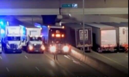 Hero moment: 13 truck drivers block highway to form safety net