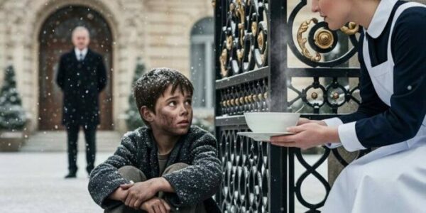 A kind maid saw a small, starving boy shivering outside the mansion gates. Believing her wealthy boss was gone for the day, she risked everything to sneak him into the kitchen and give him a hot meal. But her boss…
