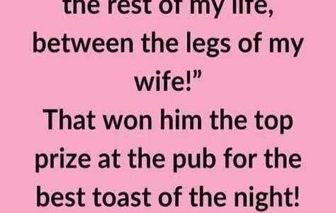 John O’Reilly hoisted his beer and said, “Here’s to spending the rest of me life, between the legs of me wife!” That won him the top prize at the pub for the best toast of the night! He went home…