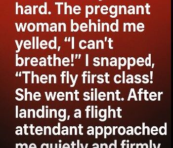 I reclined my seat hard. The pregnant woman behind me yelled, “I can’t breathe!” I snapped, “Then fly first class!” She went silent. After landing, a flight attendant approached me quietly and firmly said, “Sir, there’s a woman who needs…