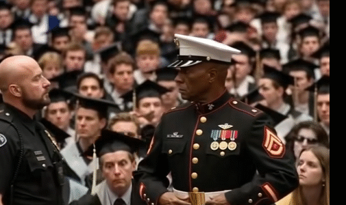 Solomon Dryden hadn’t come to make an entrance — he came to keep a promise. The retired Marine drove through dawn’s gray light, his uniform pressed, his wife’s photo tucked near his heart. His son Tyran’s high-school graduation wasn’t just…