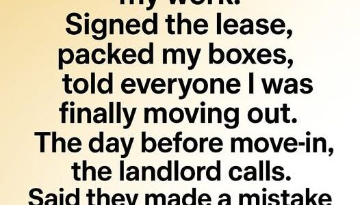 I found the perfect apartment: cheap, quiet, near work. Signed the lease, packed, told everyone I was moving. The day before move-in, the landlord called: mistake, it went to someone else. I was furious, embarrassed, and had to unpack. A…