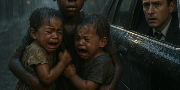 “A billionaire saw a boy begging in the rain with twin children, what he discovered made him cry…