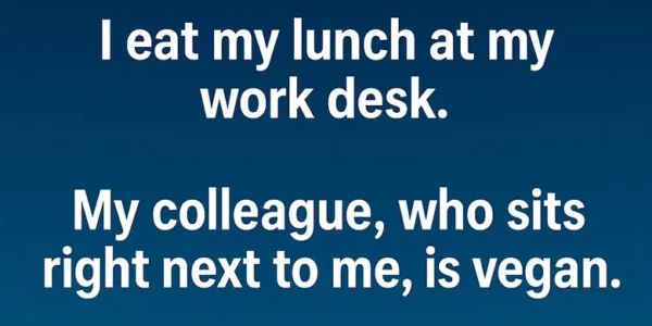 I eat my lunch at my work desk. My colleague, who sits right next to me, is vegan. Yesterday, I was having a burger, and she said gently, “Could you please not bring meat to the desk? The smell makes…