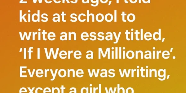 Two weeks ago, I assigned my students an essay titled “If I Were a Millionaire.” The class immediately bent over their papers, pencils moving quickly with dreams of luxury cars, big houses, and vacations. But one girl sat calmly with…