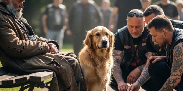 He hadn’t moved in hours.An old homeless man lay curled up on a park bench, a thin blanket covering his legs. Beside him, a loyal golden retriever, its fur matted and gray around the eyes, kept watch — head up, eyes scanning every passerby….