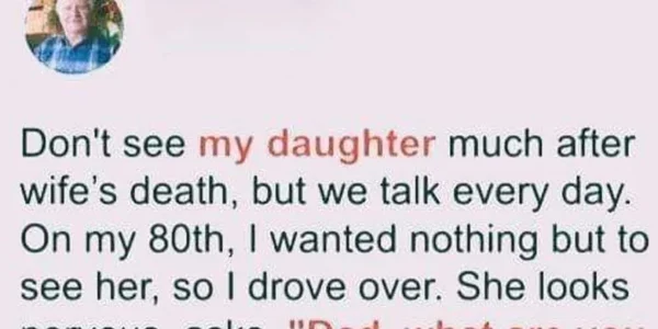 Don’t see my daughter much after wife’s death, but we talk every day. On my 80th, I wanted nothing but to see her, so I drove over. She looks nervous, asks, “Dad, what are you here for?” I say, “Just…
