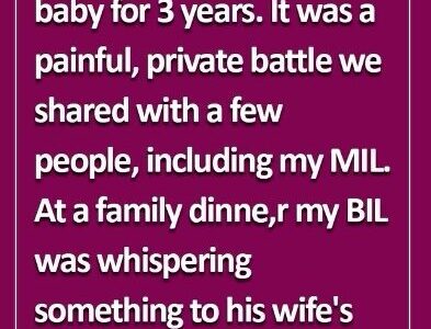 My husband and I had been trying to have a baby for 3 years. It was a painful, private battle we shared with a few people, including my MIL. At a family dinner, my BIL was whispering something to his…