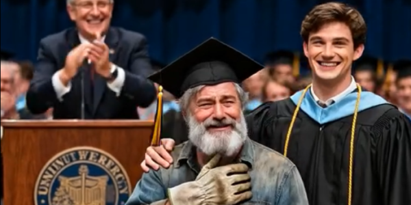 For twenty-five years, my stepfather worked as a construction laborer, raising me with the dream that I would one day earn a PhD. At my graduation ceremony, the professor’s look of recognition made the entire room fall silent in awe….