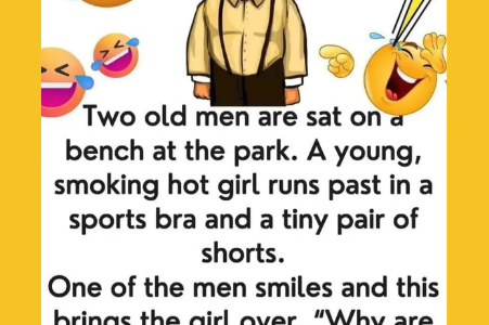 Old Men Sitting On A Bench Two old men are sat on a bench at the park. A young, smoking hot girl runs past in a sports bra and a tiny pair of shorts. One of the men smiles and…