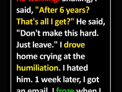 The Firing That Saved Me My boss fired me without warning. Six years—gone in minutes. He told me not to “make it harder,” and I left shaking, humiliated. I cried the whole drive home and spent days angry at him….