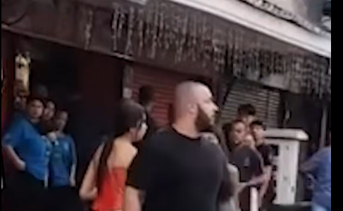 Giant bodybuilder knocks out drunk tourists in wild street fight outside bar
