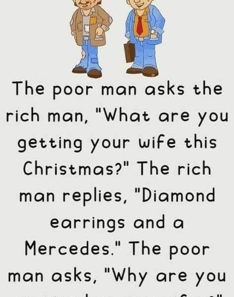 “Diamond earrings and a Mercedes.” The poor man asks,