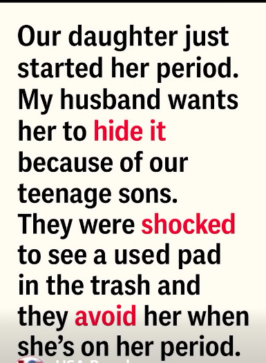 Things have only gotten worse. Our sons have started avoiding her whenever she’s on her period, and they even refused to sit on the same couch with her because they thought they’d ‘get stained.’ It broke my heart. I can see my daughter’s confidence slipping, and it hurts to know she feels isolated in her own home. What should I do?”