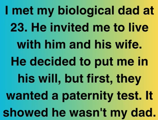 I met my biological dad at 23. He invited me to live with him and his wife. He decided to put me in his will, but first, they wanted a paternity test. It showed he wasn’t my dad. I got kicked out, became homeless. Weeks later, his wife flipped out.