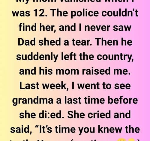 My mom vanished when I was 12. The police couldn’t find her, and I never saw Dad shed a tear. Then he suddenly left the country, and his mom raised me. Last week, I went to see Grandma one last time before she passed. She cried and said, “It’s time you knew the truth. Your mom didn’t leave—she was protecting you.” Her words hit me like a wave. For years, I had lived with unanswered questions, believing my mother had simply disappeared without a trace.