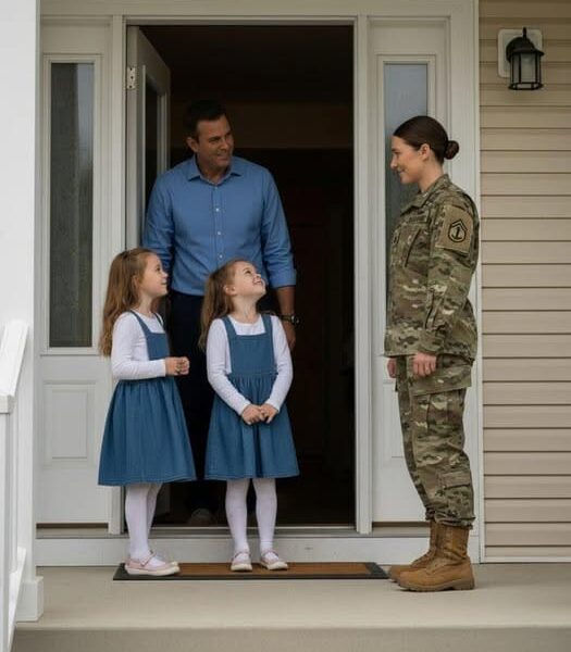 Months later, life found a new rhythm. Emily rented a small townhouse nearby. On weekends, the girls stayed over. They made pancakes, watched old Disney movies, and filled the walls with crayon drawings. One hung in a place of honor: a new picture of the three of them—Emily in uniform, the twins holding her hands.