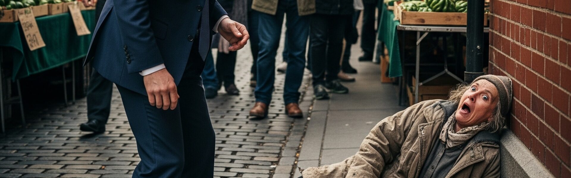 When the woman’s trembling hand accidentally brushed his leg, Adrian recoiled. Without thinking, he shoved her away with his foot. Coins scattered on the pavement as she fell back against the wall. People nearby gasped.