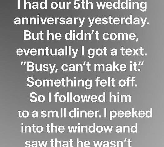 The next day, I followed him to a diner, fearing infidelity. Instead, he sat alone with papers and a small, gold-wrapped box. When I confronted him, he teared up, explaining he’d been working extra shifts to afford a bracelet engraved with, “Five years down, forever to go.” He canceled dinner because he couldn’t afford my plans. My heart ached—he did it all for me.